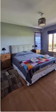 La casa cuenta con 3 dormitorios, una amplia sala de estar y una cocina completamente equipada. Los interiores son acogedores y están decorados con buen gusto, ofreciendo un ambiente relajante para disfrutar después de un día de exploración en la región.